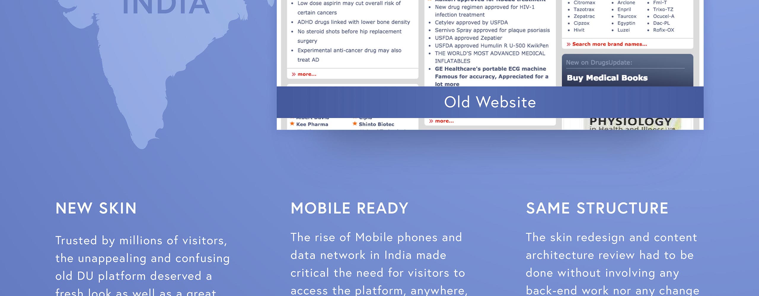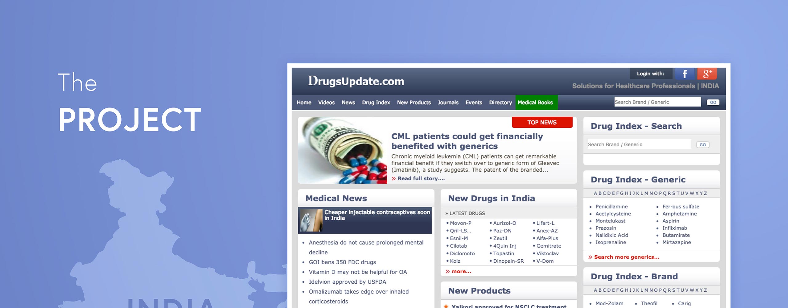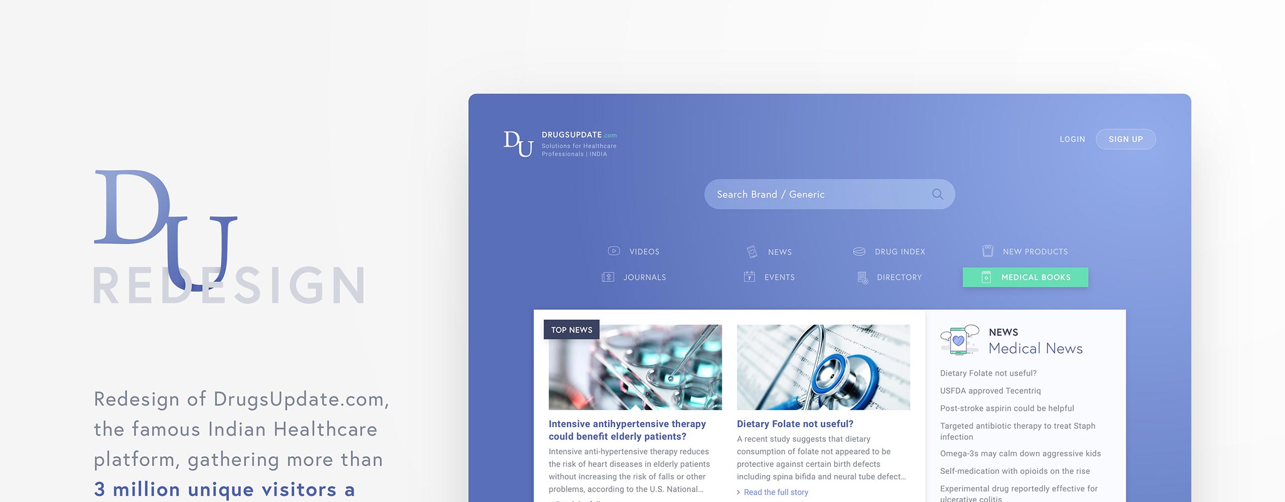 Redesign of DrugsUpdate.com, the famous Indian Healthcare platform, gathering more than 3 million unique visitors a year.